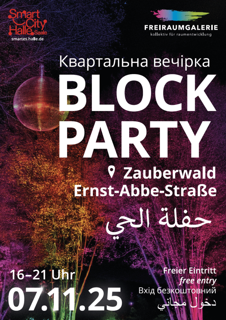 „48 Säulen der Gesellschaft – Ein kooperatives Kunstfestival für 60 Jahre Halle-Neustadt“ ist ein Kunstprojekt der Freiraumgalerie – Kollektiv für Raumentwicklung in Trägerschaft des Wall & Space e.V. Wir danken den Förder*innen des Projekts, der Stadt Halle (Saale), dem Fonds Soziokultur, der Wüstenrot Stiftung und Caparol.