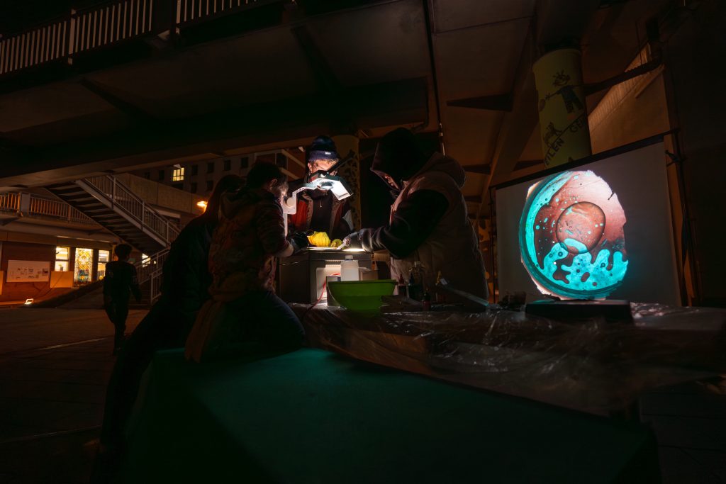 Während der Wintermarkt auf dem Stadtplatz für weihnachtliche Stimmung sorgte, haben wir gemeinsam mit Menschen aus Halle-Neustadt und Halle (Saale) die Neustädter Passage kreativ und mit viel Licht neu inszeniert: Mit Beamern und Polylux wurden die verschiedensten kreativen und interaktiven Ideen an die Flächen der Neustädter Passage projiziert. Die Projektionen und luden zum Mitmachen, Verweilen, sich austauschen und Nachdenken ein.